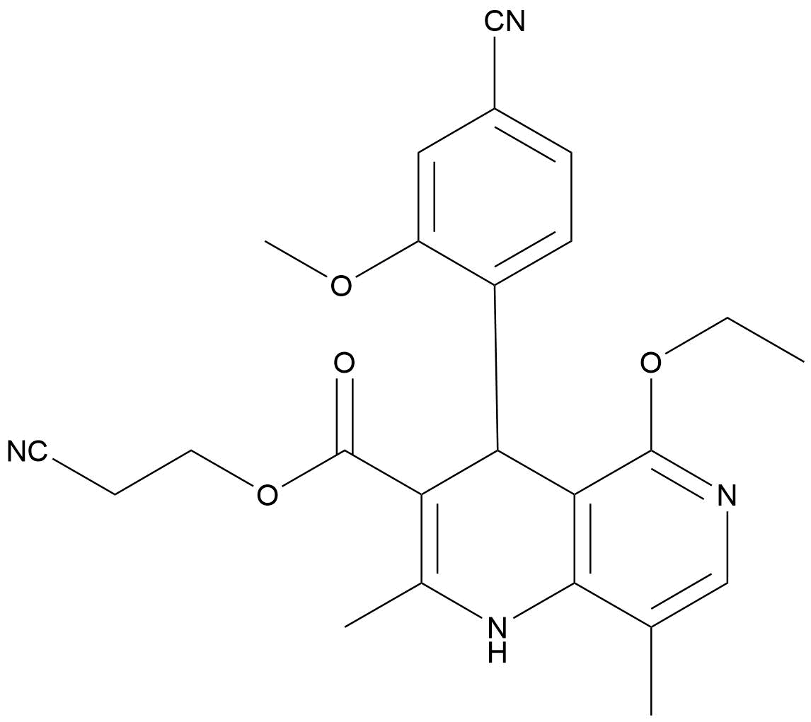 化學(xué)名稱:2-氰乙基 4-(4-氰基-2-甲氧基苯基)-5-乙氧基-2,8-二甲基-1,4-二氫-1,6-萘啶-3-羧酸酯